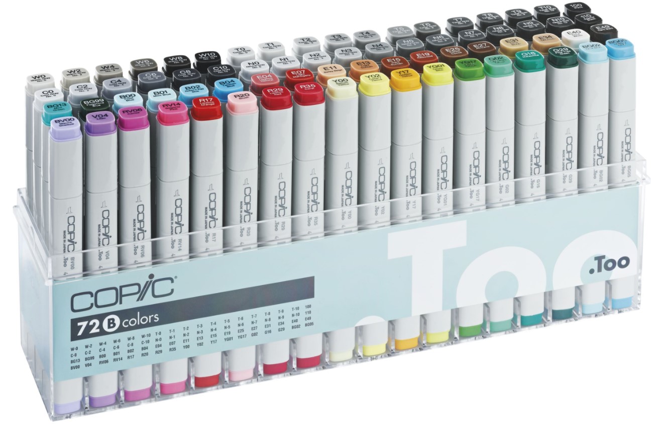Маркеры Copic также доступны в виде одиночных маркеров 213 цветов и нейтрального блендера.