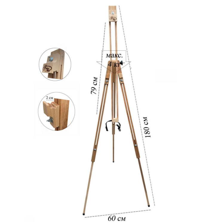 Мольберт тринога арт-20а ручной работы, подходит для выставок и устойчив. Производство - Украина.