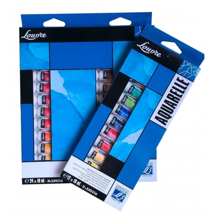 Набір Акварельних фарб LOUVRE з 24 тюбиків фарби по 10 мл. арт.806787 Акварель - фарба яка дозволяє створювати шедеври завдяки тому, що при розчиненні у воді утворює прозору суміш тонкого пігменту і дозволяє за рахунок цього створювати ефект легкості, легкості та тонкі переходи.Фарби високої якості Франція