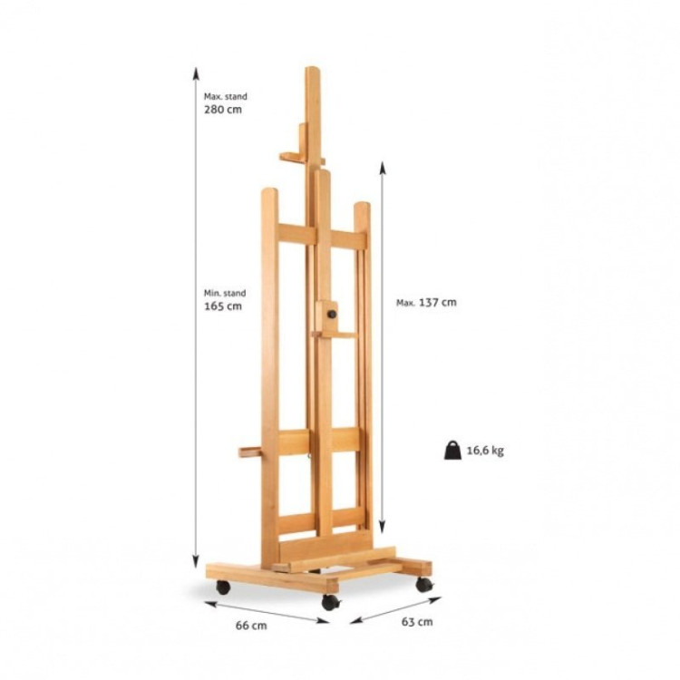 Мольберт студійний Академічний двосторонній арт-36/38 від LeoArt - це ідеальний інструмент для художників будь-якого рівня. Висота мольберта може коливатися від 190 до 280 см, що дозволяє зручно працювати на ньому. Ширина полиці складає 63 см, а навантаження до 20 кг робить його ідеальним для професіонального використання. Габарити у складеному вигляді складають 66х63х190 см, а вага всього 20 кг, що робить його зручним для перенесення і зберігання.