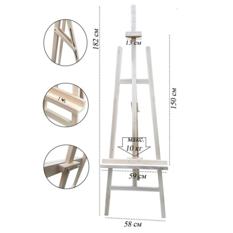Просто розгорніть мольберт, встановіть його на потрібну висоту, зафіксуйте полотно і готовіться до творчості!