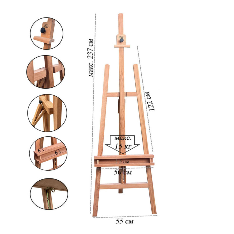 Мольберт серії LeoArt-41Б з полицею для кистей - це ідеальний вибір для художників різного рівня майстерності. Виконаний з натурального екологічно чистого дерева (бук), цей мольберт не тільки стійкий та надійний, але й естетично привабливий. Регулювання як нахилу, так і висоти поверхні дозволяє вам знаходити оптимальне положення для творчості. Завдяки своїм компактним розмірам та легкій вазі, цей мольберт ідеально підходить для використання на виставках, майстернях та навчальних закладах.