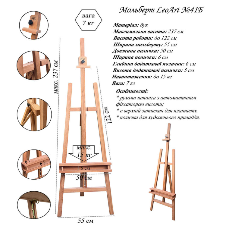 Мольберт LeoArt-41Б є незамінним інструментом для художників усіх рівнів. Чи ви вже професіонал, чи тільки початківець, він допоможе вам реалізувати ваші творчі ідеї та запропонує комфортні умови для творчості. Замовте Мольберт студійний LeoArt-41Б зараз на сайті art-butik.com.ua та насолоджуйтесь швидкою доставкою по всій Україні.