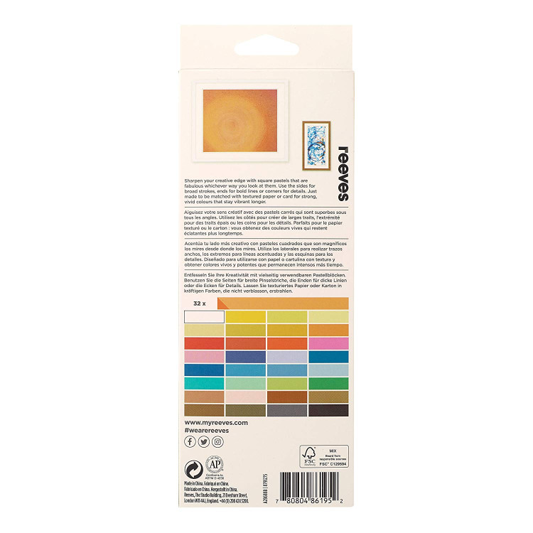 Reeves (Англія) - виробник художніх матеріалів з досвідом понад 230 років. Бренд є частиною компанії ColArt. Найновіші пігменти та сучасне обладнання – запорука якості продукції Reeves. Компанія виробляє товари для художників: фарби (акварель, олія, акрил, темпера, гуаш) та допоміжні засоби до них, масляну, м'яку та водорозчинну пастель, гелі та клею, різні набори фарб, пензлі, полотна та багато іншого.
