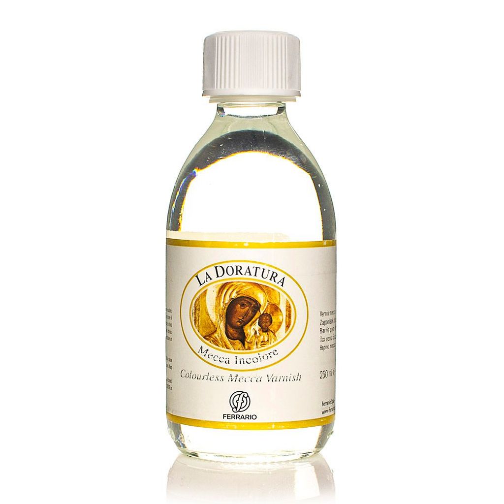 Лак МЕККА, використовується позолотником у процесі золочення, що на захисний шар, який на захистити яскравий, красивий колір золота, від навколишнього середовища і тимчасового зносу. - безбарвний (що не впливає на основний колір позолоти);