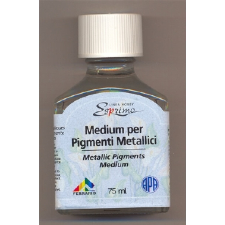 Медіум-розріджувач для металевого пігменту, використовується для розведення пігменту металевого порошку, який використовується в процесі позолоти, золочення.  При використанні даного розріджувача для металевого пігменту, Ви можете не перейматися тим, що робоча поверхня окислиться. Так само при змішуванні медіуму з металевим пігментом кольори залишаються насиченими та світлостійкими. Медіум-розріджувач, досить швидко висихає і добре зчепляється практично з будь-якою основою і поверхнею.